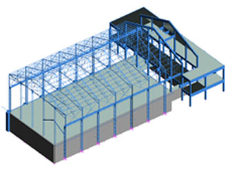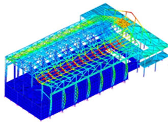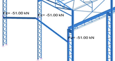 Afin de ne pas s'éloigner exagérément du comportement réel, les apports de rigidité non prévus lors de la conception du bâtiment ont été pris en compte, tels que ceux d'un effet de portique "involontaire" mais non négligeable, identifié au niveau des poutres de roulement du pont élévateur.